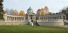 Местом его погребения должна была стать специально возведенная знаменитая колоннада в усадьбе Архангельское (1909—1916, архитектор Р. И. Клейн, при участии А. Д. Чичагова, Г. Б. Бархина[7]; интерьеры отделаны художником И. И. Нивинским).