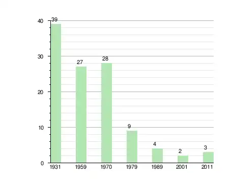 | 1931[3] | 1959пер.[4] | 1970пер.[4] | 1979пер.[5] | 1989пер.[6] | 2001пер.[7] | 2011пер.[8] |