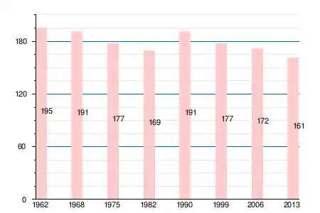 Население коммуны в 2011 году составляло 167 человек[6], в 2012 году — 164 человека[7], а в 2013-м — 161 человек[5].