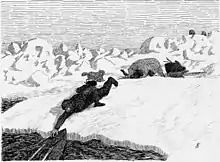 После двух неудачных попыток 14 марта 1895 года Нансен в сопровождении Юхансена окончательно покинул «Фрам», который тогда находился в точке 84º05’ с. ш. и 101º35’ в. д. Поход оказался чрезвычайно тяжёлым из-за противных ветров, почти сорокаградусных морозов и сильно изломанного льда: через гряды торосов иногда приходилось прорубаться в буквальном смысле. Первоначально дневной переход равнялся 16 км, но далее сократился всего до пяти. Нансен шёл первым со своей упряжкой и каяком, разведывая путь. Юхансен следил за двумя нартами, на одних из которых был его каяк, а на вторых — основная часть провианта. Шерстяные костюмы пропотевали и покрывались слоем льда, а ночью оттаивали и были мокрыми. Полярники обмораживались и травмировались. Простейшие бытовые задачи отнимали слишком много времени, начиная от установки палатки и разрубания пеммикана для собак. Холода не позволяли высыпаться по ночам. Первым убитым псом оказался Ливьегерен, который больше не мог работать в упряжке. Его тушу разрубили, но собаки отказались её есть, они ещё не были сильно истощены. Следующим был жирный пёс Перпетуум (названный потому, что постоянно крутил хвостом). Юхансен не любил убивать собак, но был вынужден смириться с необходимостью и даже выработал способ действовать финкой, не причиняя животным боли[21].