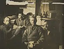 Сидят в среднем ряду: Я. Юхансен, К. Преструд, Р. Амундсен, Т. Нильсен, Я. Ертсен, Х. Хансен.