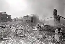 ![]() Советские разведчики вошли в Юхнов. Фото В. П. Гребнева |