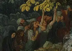 В 1846—1847 годах в альбомах Иванова стали появляться наброски на библейские сюжеты, не связанные с темой полотна «Явление Мессии»[59]. Начиная с 1849 года и до конца своей жизни художник работал над большой серией произведений, получивших общее название «Библейских эскизов»[60]. Было задумано около пяти сотен сюжетов, более двухсот из которых были реализованы в эскизах[61]. Во время работы над «Библейскими эскизами» Иванов надолго оставлял работу над большим полотном, иногда не касаясь его по несколько месяцев[62].