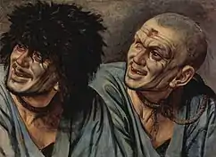 В правой части полотна, за «дрожащими», сверху вниз движется толпа, состоящая из фарисеев, римских всадников и других действующих лиц[128][129]. Самого левого персонажа из толпы, одетого в хламиду тёмно-кирпичного цвета, называют «ближайшим к Христу»[130]; некоторые исследователи связывают его с образом Николая Гоголя[131]. Ещё несколько персонажей изображены в центральной части полотна, за группой богатого старика и его раба. Среди них выделяются юноша и поднимающийся старик[132], а также сидящий странник с посохом[133], в образе которого некоторые авторы видят «духовный автопортрет» художника[134]. Под деревьями, находящимися в левой части холста, между головами апостолов можно увидеть «спрятанную» группу людей, среди которых есть и мужчины, и женщины. Как и все остальные, они тоже являются свидетелями происходящего действия[135].