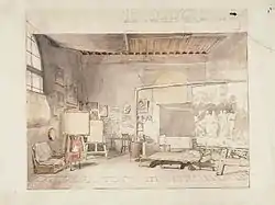 Летом 1837 года, во время осушки загрунтованного им холста, художник предпринял поездку на север Италии для ознакомления с творчеством старых итальянских мастеров. Он также посетил Ливорно, чтобы «заметить типы еврейских благородных голов»[33] и «набрать себе портфель для начатия картины». Осенью 1837 года художник снял новую, более просторную студию, расположенную по адресу Vicolo del Vantaggio, № 7. В конце сентября — начале октября Иванов сообщал в ОПХ, что картина «Явление Мессии» «вся уже урисована с лёгкой оттенкой одним тоном, так что можно уже видеть отчёт и выражение во всех частях её»[32].