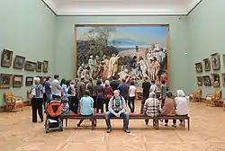 В то же время в России зрело недовольство тем, что посылаемые за границу художники брались за слишком крупноформатные работы. 30 ноября 1841 года было выпущено указание министра императорского двора Петра Волконского начальнику русских художников, посылаемых Академией художеств за границу, Павлу Кривцову, которое гласило: «Осведомясь, что некоторые из прибывающих в Италию наших художников начинают писать картины весьма большого размера, я покорно прошу Вас объявить им, чтобы они впредь не предпринимали таких работ, которые по колоссальной своей величине не удобны к помещению в комнатах»[45].