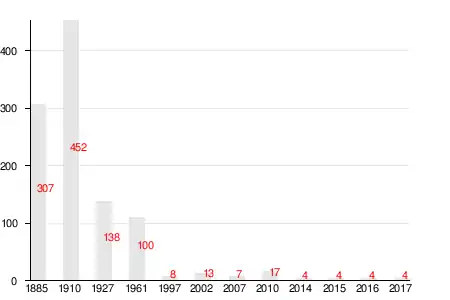 | 1885 | 1910 | 1927 | 1961 | 1997 | 2007[14] | 2010[15] |