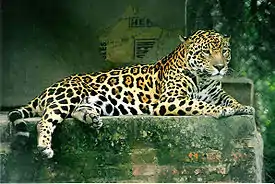 Ягуа́р[1] (лат. Panthera onca) — вид хищных млекопитающих семейства кошачьих, один из пяти представителей рода пантер (Panthera), который относится к подсемейству больших кошек. Единственный представитель рода на территории Северной и Южной Америки. Третий по размеру в мире, и самый крупный в Новом свете представитель семейства кошачьих[2]. Ареал вида простирается от Мексики к югу до Парагвая и северной Аргентины.