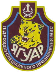 ![]() эмблема спецполка ВВ МВД Украины «Ягуар» (до 2015 года) | |