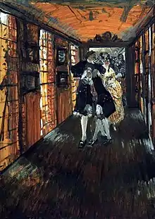 … убегала из дому и ночевала бог знает где, раз, между прочим, в избе своего же садовника, вела знакомство со многими дамами непотребными и подозрительными, бродила вне дома раздетая, скакала «сорокой», ворвалась в церковь, оскорбляла священнослужителя и метала на пол священные предметы[6].