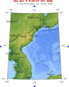 9 октября 2006 года КНДР объявила об успешном проведении ядерного испытания. В сообщении Центрального телеграфного агентства Кореи (ЦТАК) говорилось: «Наше исследовательское подразделение безопасно и успешно произвело подземное ядерное испытание… Ядерное испытание стало историческим событием, которое принесло счастье нашим военным и народу. Ядерное испытание внесёт вклад в поддержание мира и стабильности на Корейском полуострове и в прилегающем районе».