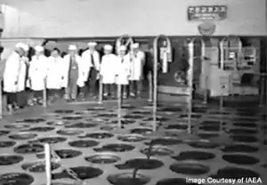 В 1959 году КНДР заключила договоры о сотрудничестве в области мирного использования ядерной энергии с СССР[7] КНР и начала строительство исследовательского центра в Йонбёне (введён в строй в 1964 году), где в 1965 году был установлен советский реактор ИРТ-2000 мощностью 2 МВт. Реактор ИРТ-2000 — это исследовательский легководный реактор бассейнового типа с водно-бериллиевым отражателем нейтронов. В качестве топлива в этом реакторе применяется сравнительно сильно обогащённый уран.