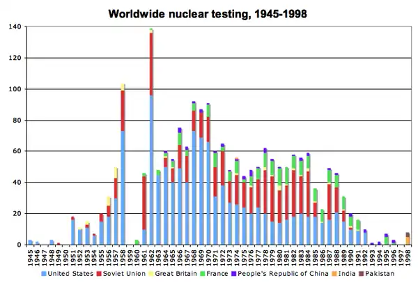 После вступления в силу договора об ограничении испытаний в трёх средах в 1963 году, большая часть испытаний проводилась странами, подписавшими договор, под землей.