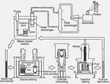 Целью является повышение эффективности использования урана за счет воспроизводства плутония и устранение необходимости вывозить с территории объекта трансурановых изотопов. В конструкции реактора используется немодерируемая активная зона, работающая на быстрых нейтронах, позволяющая потреблять любой трансурановый изотоп (а в некоторых случаях использовать их в качестве топлива). Помимо преимущества утилизации трансуранов с длительным периодом полураспада, топливо SFR расширяется при перегреве реактора, и цепная реакция автоматически замедляется. Таким образом, реактор обладает собственными элементами пассивной безопасности[28].