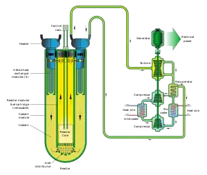 | Газоохлаждаемый быстрый реактор (GFR) | Быстрый | Гелий | 850 | Закрытый | 1200 | General Atomics (en:Energy Multiplier Module) |