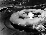 Огненный пузырь подводного взрыва Доминик Рыба-меч, 20 кт на глубине 200 м, вид с воздуха