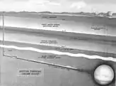 Кратер диаметром 390 м и глубиной 100 м после взрыва Седан, 104 кт на глубине 194 м