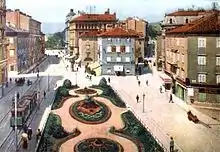 На том месте, где сегодня стоит банк «Erste», в конце 1930-х на северной стороне площади снести четырёх-этажное здание, в котором находился банк «Ri», и впоследствии там посадили деревья и получился сквер.[9]
