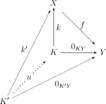 - для любого морфизма , такого что — нулевой, существует единственный морфизм , такой что :