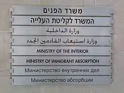 В 1999 году Верховный суд Израиля постановил, что английский, арабский и иврит были унаследованы Израилем в качестве официальных языков, но английский язык был исключён в соответствии с Законом о праве и управлении от 1948 года[9]. Закон гласил: