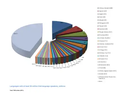 | 1 | Китайский язык[8] | 1,4 миллиарда | от 300 миллионов | от 1,7 миллиарда |