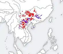 | Ареал | Восточная, Юго-Восточная Азия |