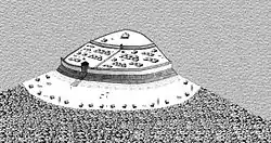 - Тауфельсберг, Германия — городище расположено на высоком конусовидном холме, окруженном по склону эскарпом и двумя концентрическими валами и рвом. На краю круглой площадки (диаметром 30 метров) открыт слой толщиной 60—70 сантиметров, состоящий из углистой земли и больших камней (внутренний вал?). Найдены средневековые черепки, кости и зубы животных. На холме построена церковь.