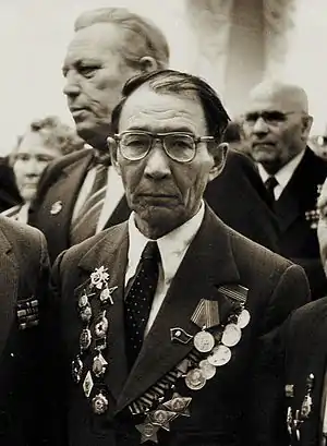 Командир пулеметного расчёта того же полка гвардии ефрейтор Хабибулла Якин 15-16 апреля 1945 года в боях в районе населенных пунктов Гожице и Ухильско вывел из строя свыше отделения вражеской пехоты, подавил два пулемета.