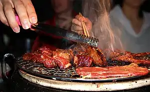 Якинику (焼き肉 или 焼肉) — термин японской кухни, означающий жареные на гриле блюда, дословно переводится как «жареное мясо». Изначально название «якинику» относилось к мясу, приготовленному в стиле барбекю. Термин был популяризирован японским писателем Канагаки Робуном в его сочинении Сэйё Рёрицу («западная кулинарная книга»), изданном в Эпоху Мэйдзи в 1872 году. Позже в раннем периоде эпохи Сёва термин стал ассоциироваться с корейскими блюдами. Из-за корейской войны, корейские рестораны в Японии разделились на северокорейские («Кита Тёсэн») и южнокорейские («Канкоку»), а название «ресторан якинику» стало использоваться как политически корректный термин для этих ресторанов вне зависимости от их происхождения.