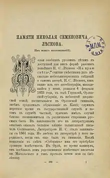 - [Без подписи] Памяти Николая Семёновича Лескова. (Из моих воспоминаний). — Игрушечка, 1895, сентябрь, № 9. С. 389—395;