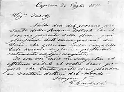 Письмо Джузеппе Гарибальди Александра Якоби хранила всю жизнь. Местонахождение письма в настоящее время неизвестно, сохранилась лишь его фотокопия[9] В. Е. Невлер свидетельствует, что писем от Гарибальди у А. Н. Якоби было несколько[13].