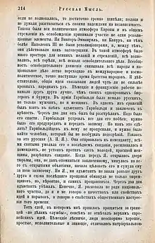 О современном правительстве России скажу лишь одно, что её нынешний государь может хвастаться освобождением крестьян, которое надеемся увидеть осуществлённым. Такой ореол славы, конечно, предпочтительнее всяким завоеваниям.