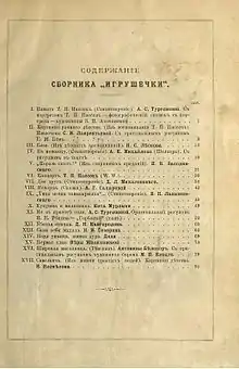 - Складень: Чтение для детей и для юношества: Сост. из произведений лучших соврем. писателей / Изд. А. Н. Толиверовой. — СПб.: тип. А. С. Суворина, 1883. — [6], 328 с.;