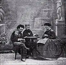 В первом помещении были тяжелораненые и умирающие. Их было семьдесят человек. На стенах тусклым светом светили ночники. Направо умирал молодой гарибальдиец, у него было три пули в груди, рядом делали ампутацию руки, без хлороформа, один раненый сидел на кровати и бредил. В бреду он командовал отрядом, чем вызывал смех зуавов. От запаха и вида несчастных мне сделалось дурно, и я попросила жандарма опереться на его руку. «Avanti (вперёд), — оттолкнул он её и угрожающе добавил: — Иначе вы сюда больше никогда не попадёте».