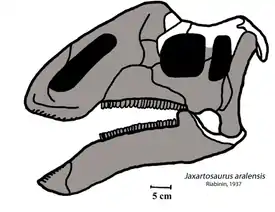 ![]() Реконструкция черепа яксартозавра | |||||||||||||||||||||||||||||||||||||||||