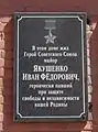 - В Нижнем Новгороде на доме по адресу: улица Ошарская д. 10, где проживал Якушенко И. Ф., установлена мемориальная доска.