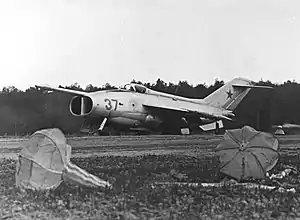 Указанная компоновка силовой установки привела к применению шасси велосипедного типа с одноколесной носовой и двухколёсной задней опорами. Конструкция планера типична для самолёта тех лет — полумонококовый фюзеляж и лонжеронное крыло с закрылками. Чтобы обезопасить пилота в нештатных ситуациях, в состав системы спасения ввели устройство автоматического принудительного катапультирования. Имелась также система автоматического управления на околонулевых скоростях полёта.