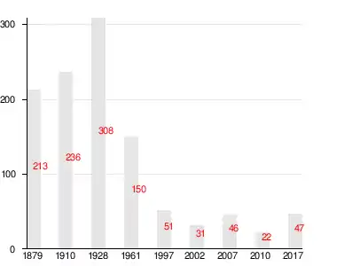 Число жителей по семейным спискам 1879 г.: 105 м. п., 108 ж. п.; по приходским сведениям 1879 г.: 93 м. п., 95 ж. п.[3]