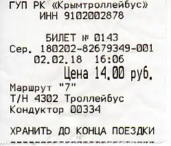 По состоянию на 1 января 2017 года на сети ГУП РК «Крымтроллейбус» установлены следующие тарифы (в рублях)[5]: