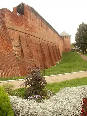 ![]() Стена Коломенского кремля рядом с Ямской башней | |||