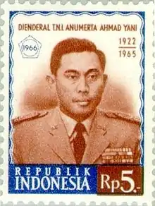 Ахмад Яни (индон. Ahmad Yani, в старой орфографии — Achmad Yani; 19 июня 1922 года, Дженар — 1 октября 1965 года, Джакарта) — индонезийский военный деятель. Генерал-лейтенант; посмертно повышен в звании до генерала. Национальный герой Индонезии. С 1963 по 1965 годы — начальник штаба сухопутных войск Национальной армии Индонезии. Во время попытки государственного переворота, совершённой левой группировкой «Движение 30 сентября», убит мятежниками в собственном доме.