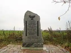 ![]() Старый основной памятник убитым евреям Яновичского гетто у деревни Зайцево возле зернотока (сзади — новый памятник) | |