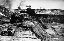 В 1899 году германское государство выкупило права у Stantien and Becker[17]. В 1912 году к северу от Пальмникена, в 1,5 км к востоку от моря был заложен глубокий — до 50 м — карьер для открытой разработки месторождения «Вальтер» (в 1916 году он стал собственностью Прусского горно-металлургического акционерного общества «Пройссаг»[18]). Вскрышные работы производили многоковшовыми экскаваторами. Они же черпали голубую землю и загружали её в открытые вагоны электропоезда, который по наклонному пути следовал к обогатительной фабрике. Вскрышной породой заполняли выработанное пространство. Такой метод добычи янтаря просуществовал до 1944 года. Участок месторождения, получивший название Прикартерного, разрабатывали в течение 60 лет (до января 1972 г)[19].