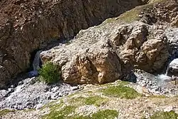 Небольшая река, начало берёт на водоразделе Курайского хребта, при выходе из отрогов которого частично разбирается на нужды полива пастбищ, а частично уходит под поверхность. Ввиду этого широкое русло в среднем и нижнем течении сухое и безводное. Но в то же время наличие неглубоко залегающих подземных вод позволяет в русле расти кустам и тополям, что выделяет эту местность из окружающего ландшафта.