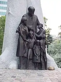 Нам сообщили, что ведут школу медсестёр, аптеки, детский приют Корчака. Стояла ужасная жара. Детей из интернатов я посадил в самом конце площади, у стены. Я надеялся, что сегодня их удастся спасти… Вдруг пришёл приказ вывести интернат. Нет, этого зрелища я никогда не забуду! Это был не обычный марш к вагонам, это был организованный немой протест против бандитизма! Началось шествие, какого никогда ещё до сих пор не было. Выстроенные четвёрками дети. Во главе — Корчак с глазами, устремлёнными вперёд, державший двух детей за руки. Даже вспомогательная полиция встала смирно и отдала честь. Когда немцы увидели Корчака, они спросили: «Кто этот человек?» Я не мог больше выдержать — слёзы хлынули из моих глаз, и я закрыл лицо руками.