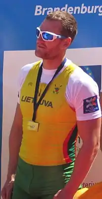 В 2014 году вошёл в основной состав литовской национальной сборной и принял участие во взрослом европейском первенстве в Белграде, где стал восьмым в парных четвёрках.