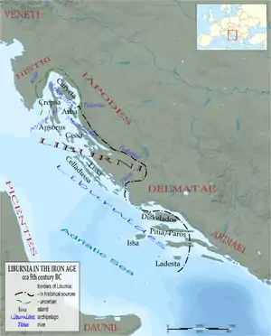 - Wilkes, J. J. The Illyrians, 1992,ISBN 0-631-19807-5, page 79, "along with the evidence of name formulae, a Venetic element among the Japodes. A group of names identified by Alföldy as of Celtic origin: Ammida, Andes, Iaritus, Matera, Maxa, ".