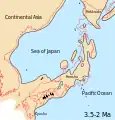 Японский архипелаг, Японское море и окружающая часть континентальной Восточной Азии в среднем плиоцене до позднего плиоцена (3,5-2 млн лет назад)