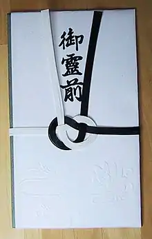 Так как в Японии имеет место переплетение верований, то похороны обычно проходят по буддистским обрядам. После смерти губы умершего увлажняют водой — это называется Церемонией воды в минуту смерти (яп. 末期の水 мацуго-но мидзу). Семейную гробницу укрывают белой бумагой «камидана-фудзи», чтобы уберечь покойного от нечистых духов. Небольшой столик, декорированный цветами, благовониями и свечами, ставится рядом с кроватью умершего. На грудь покойного иногда кладут нож, чтобы отогнать злых духов.