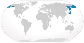Ареал японского кита охватывает северную часть Тихого океана от Охотского до Берингова моря и Аляскинского залива. Изредка представители этого вида наблюдаются и у берегов Мексики. Самки рождают детёнышей у берегов Японии.